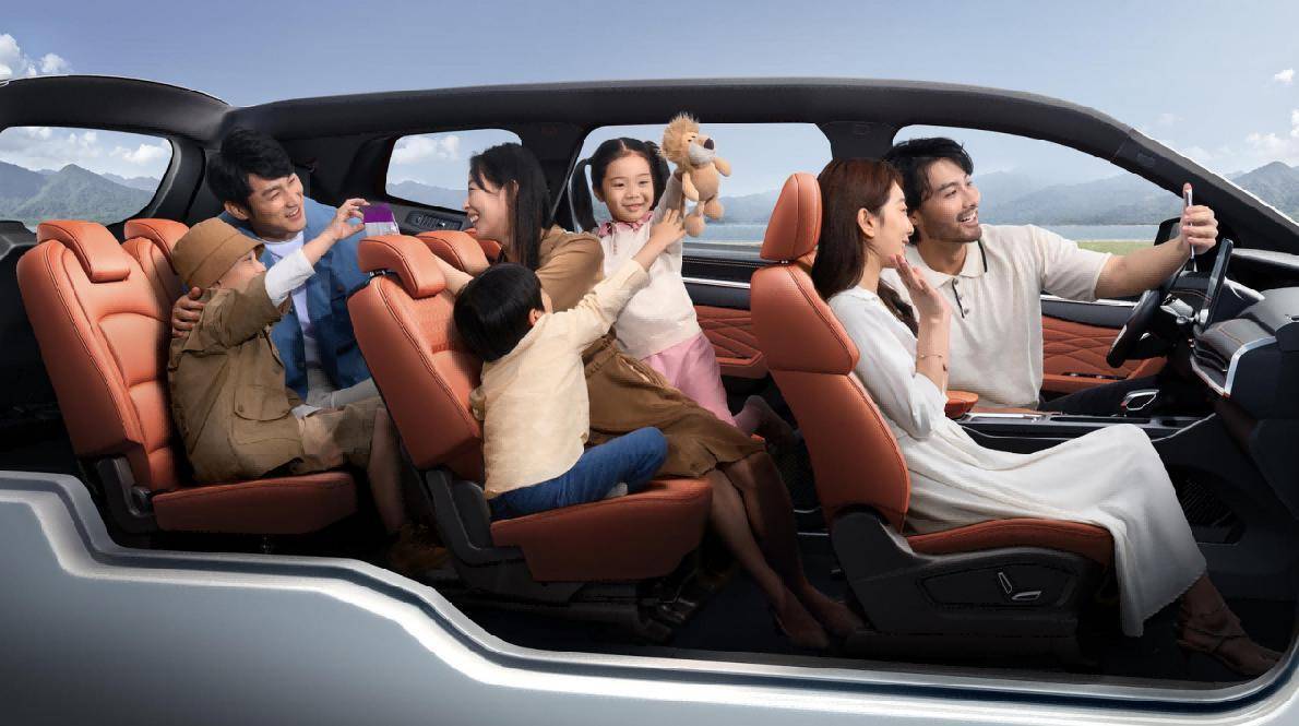 空间表现是豪越L的另一大亮点。2825mm的轴距配合2+3+2七座布局,每一排都有独立调节空间——第三排靠背支持8挡调节,1.8米成人乘坐也能轻松翘起二郎腿,还配有独立空调控制,彻底告别“小板凳”尴尬。若需要装载大件物品,放倒第二、三排座椅可秒变2.2米大床,后备箱容积最大可达2360L,露营装备、儿童自行车、渔具等轻松收纳;日常使用五座模式时,628L的后备箱也能满足全家购物需求,左右双通道设计更让第三排进出方便,老人小孩上下车不费劲。