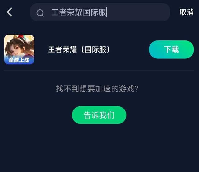 打开迅游加速器APP,在搜索栏输入“王者荣耀国际服”就可以找到游戏安装包,点击“下载”按钮,就可以自动获取官方正版安装包,下载并安装了。如果是IOS用户,则可以通过迅游加速器获取海外Apple ID,再更改苹果账号之后进入APP Store的账号即可下载。