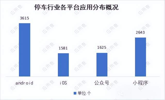 根据应用查数据统计,截至2025年9月初,Android和小程序的应用较多,停车服务(占道停车、立体车库、立体停车楼、小区停车场、商业停车场、个人停车场))App中,多数以泛汽车服务为主、停车服务仅作辅助模块,停车功能尚未独立成核心场景。