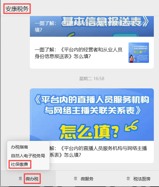 (三)“安康税务”微信公众号:1.进入“安康税务”公众号,点击底部左侧【微办税】,选择并点击【社保缴费】,打开“陕西社保缴费”小程序;2.选择并点击业务办理页面【灵活就业养老保险】,进入该业务办理页面;3.填写【身份证号码】、【姓名】(非必填)等相关信息,点击【下一步】,确认所属年度(2025),点击【查询】,选择相应的缴费档次,60%至300%(对应月基数为4650元至23250元)。再次点击【确认】,选择缴费月份,应缴纳各个月份均应选中(后期将增加“全选”按钮),再点击【下一步】,核对缴费金额(全年应为11160元至55800元),核对无误后点击右下角“缴费”,完成缴费。如下图: