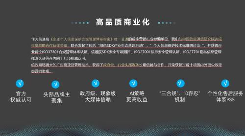 在认证层面,斩获行业首个ISO37301合规管理体系认证,叠加ISO27001信息安全管理认证、ISO27701隐私信息管理体系认证、信通院SDK安全专项测评、国家版权局计算机软件著作权登记等十余项权威资质,构建起“标准制定+资质认证+实践落地”的全维度合规体系。这种“合规先行”的业务逻辑,不仅帮助合作伙伴规避政策风险,更成为政府级、央媒等高端客户选择倍孜的核心原因。