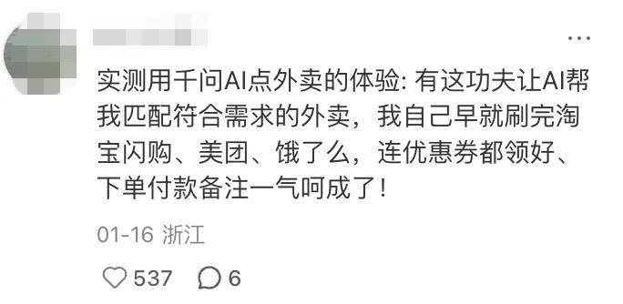 但火爆背后也暴露出明显的短板:活动峰值下用户体验尚不稳定、操作链路繁琐,部分用户认为AI辅助下单效率不如手动。