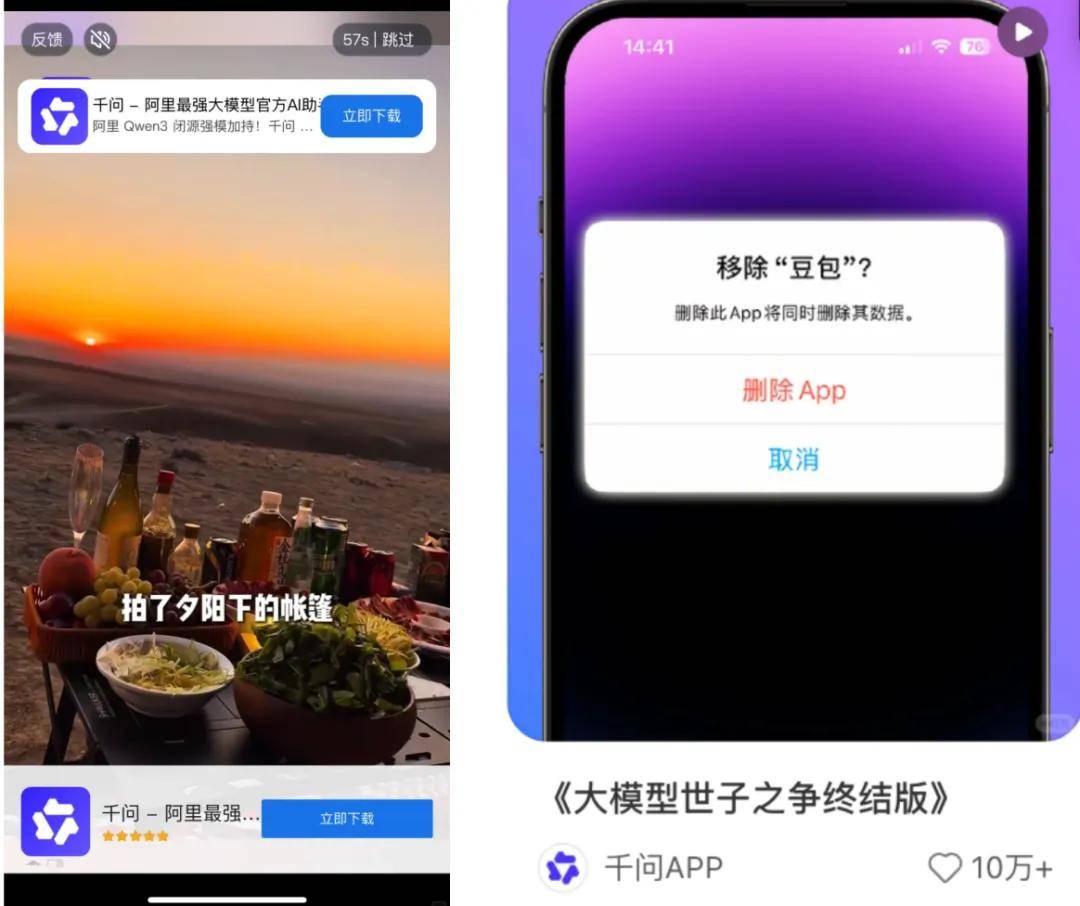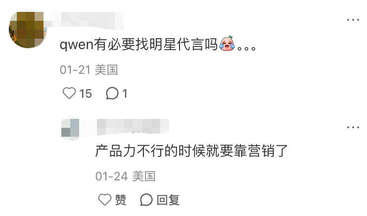 渠道上,千问实现全场景覆盖,“千问-阿里最强大模型官方AI助手”的广告视频遍布各视频软件、火车站广告墙等,甚至被网友调侃“千问是把整个小红书买了吗?现在满大街都是千问AI广告” ,可见其曝光力度之强。