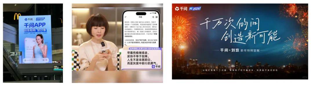 在娱乐化层面,千问密集布局明星与内容合作:2026 年 1 月签约网球运动员郑钦文为全球代言人,英文名 Queen Wen 与 Qwen 形成强记忆点;此前还合作鲁豫、刘欢、喜人组合、刘旸等,并成为 NBA 中国官方市场合作伙伴,通过代言、短片、综艺、赛事等方式扩大声量。