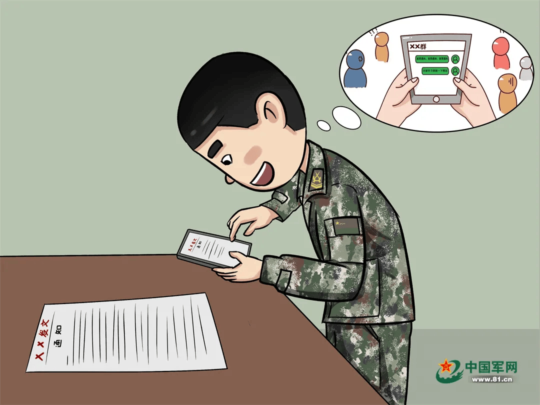 微信群已经成为网民们获取信息、沟通交流的重要渠道,但值得注意的是一些群聊中出现不良倾向的内容,转发涉军信息、谈论敏感话题,造成泄密隐患。针对这些群聊“乱象”,官兵要提高防范意识,主动及时清退违规群,严禁使用微信、QQ等社交软件传输涉密文件,时刻警惕“指尖”泄密。