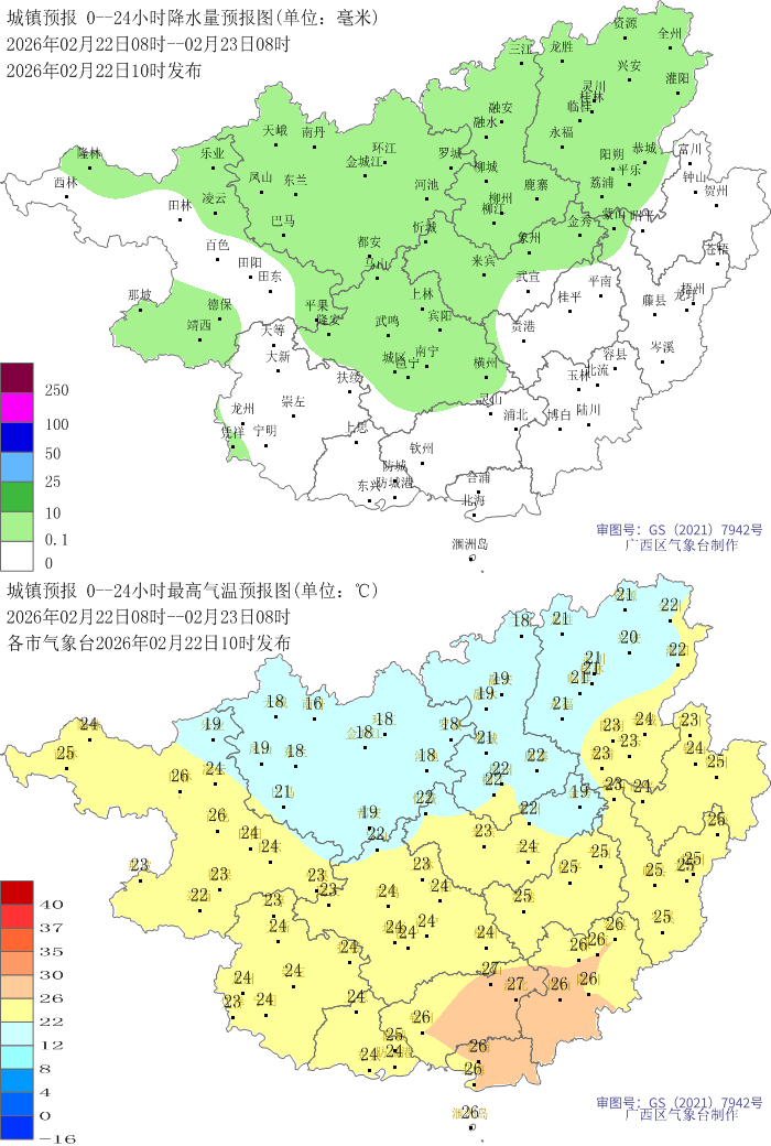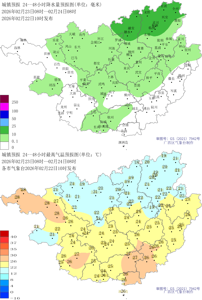 预计今天(22日)晚上到明天白天,桂林、柳州、河池、百色等市阴天有小到中雨、局地大雨并伴有短时雷暴大风等强对流天气,其他地区阴天有分散小雨。全区部分地区有能见度不足1000米的雾,局地有轻度回南潮湿天气。最低气温:桂北13~17℃,桂南16~20℃。