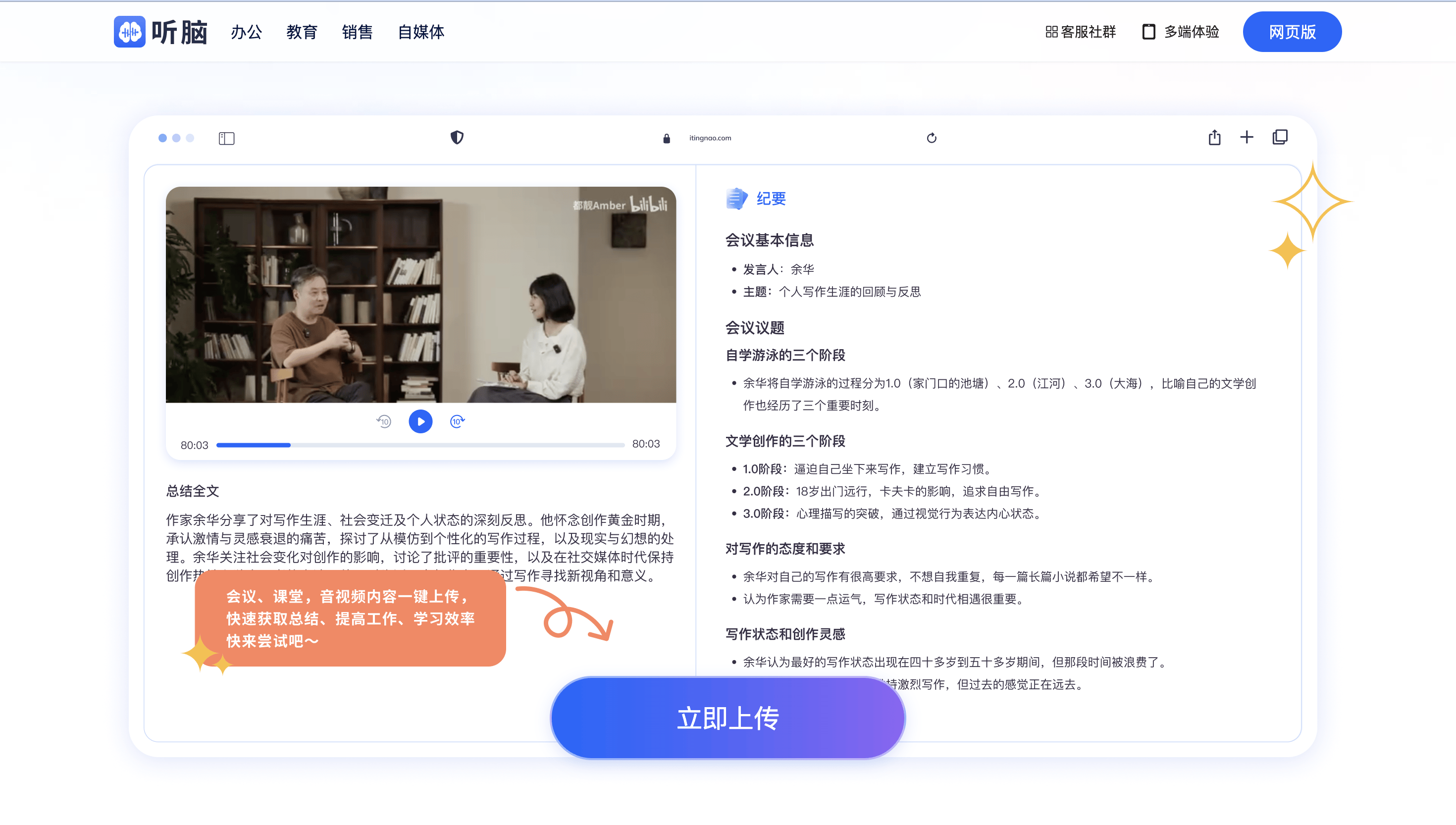 具体怎么选完全看自己的使用频率和需求。如果每周开会超过2小时,或者经常需要做用户访谈、客户沟通记录,需要输出结构化的会议纪要、提取待办事项,直接选听脑AI就可以,199元的年费性价比最高,省下来的时间足够你处理更多核心工作。如果是学生党,每月转写时长不超过5小时,只是用来转网课录音、做个人学习笔记,不需要复杂的纪要整理功能,选有道云笔记高级会员足够用,价格也更低。如果一年到头就用个三五次,只需要转写逐字稿不需要后续整理,选按次付费的讯飞听见,总支出最低。如果完全没有预算,只是偶尔转个10分钟以内的短录音,用手机自带的转写功能就够,不用额外下载app。返回搜狐,查看更多