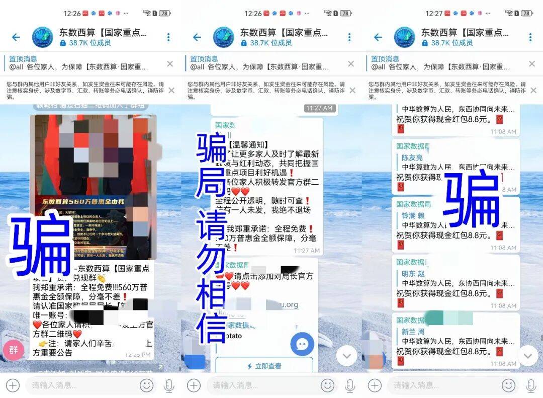 打着国家“东数西算”战略旗号,谎称发放560万数字人民币兑现款,用8.8元小额红包诱导大家推广拉人。