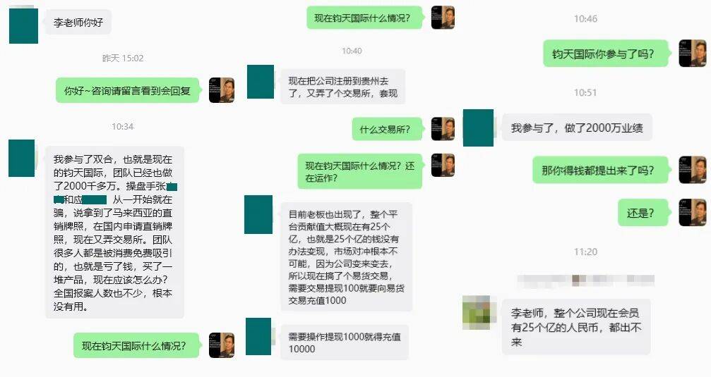 前身“双合元界”因传销被罚没748万余元,改头换面成“钧天国际”,谎称是马来西亚集团项目,依旧沿用“消费返利+拉人交钱+层级计酬”的传销模式。