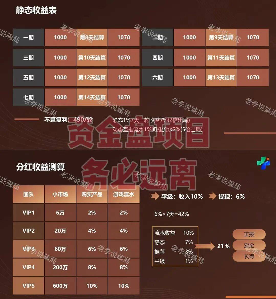 但其整个系统的运转,完全依赖于不断有新人加入和投钱,没有任何实体产业能支撑如此高额的返利。一旦拉不到新人,资金链断裂,所有承诺都会瞬间崩塌。