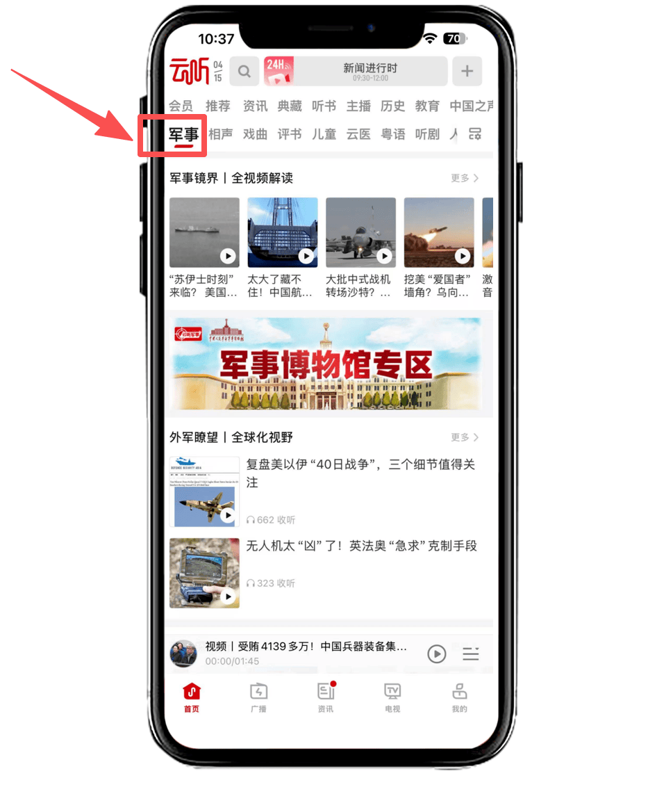 打开“云听”App→首页搜索“军事博物馆”→进入专辑合辑即可观看全部内容