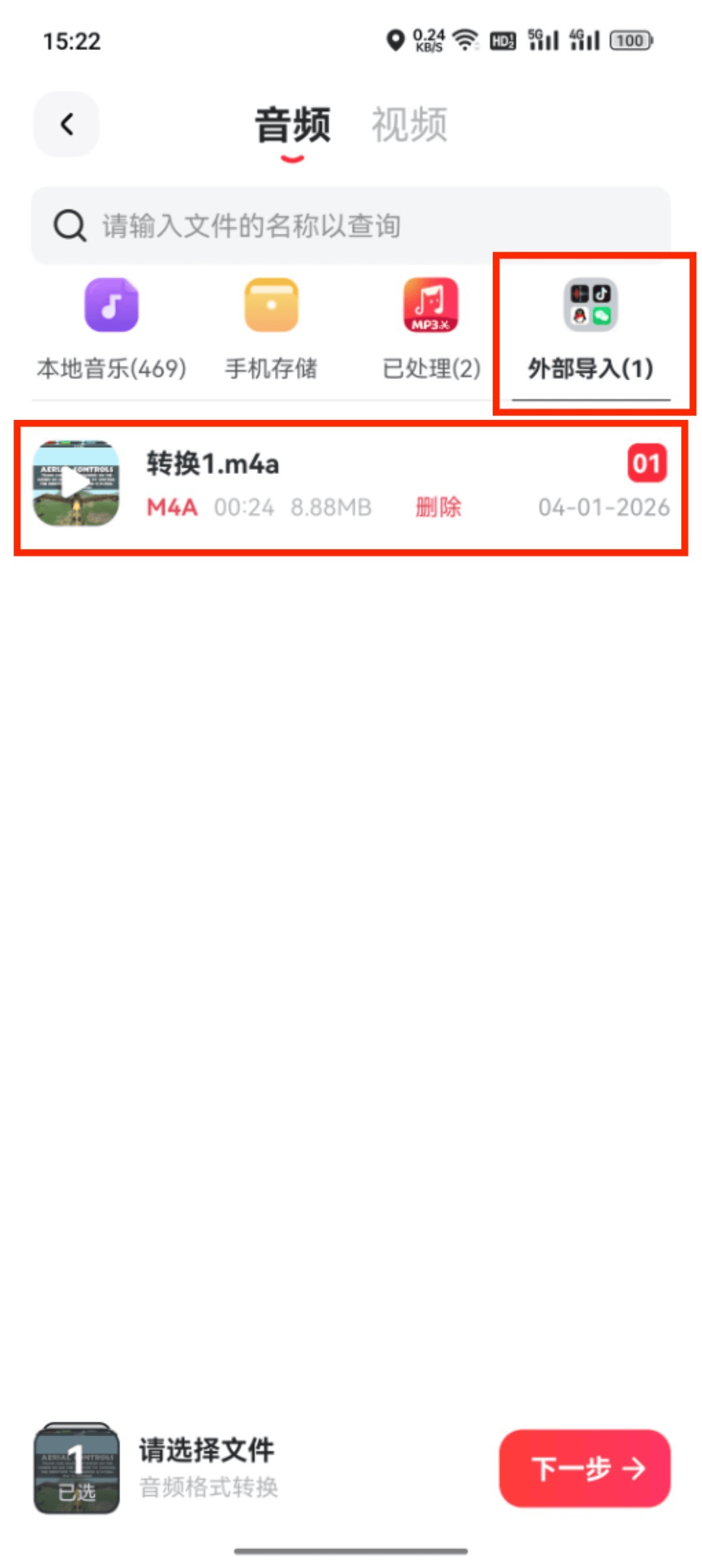 第二步在转换页面点击选择文件,从手机存储中找到酷狗缓存或下载目录,选中需要转换的歌曲文件。App支持从文件管理器和酷狗下载路径直接读取,定位起来很方便。