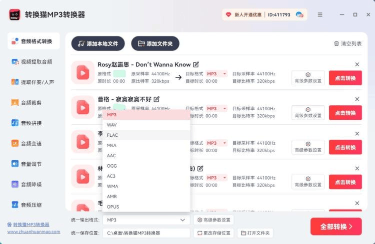 转换猫是一款专注于音频格式转换的桌面工具,支持Windows系统,界面简洁,上手容易。它的最大优势在于支持多种酷狗专属格式批量转换,而且转换速度快、音质损耗低。