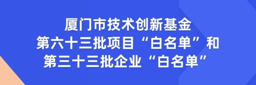 厦门市技术创新基金第六十三批项目“白名单”和第三十三批企业“白名单”新鲜出炉啦!经企业申报、部门联合审核,本次共有17个优质项目和3家符合条件的企业成功入选,它们将获得技术创新基金的大力支持,助力我市产业升级和科技型企业成长。