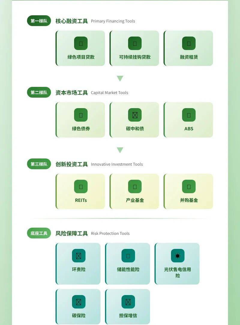 第一梯队:绿色项目贷款 / 可持续挂钩贷款 / 融资租赁。因为最容易落地、最适合建设期。