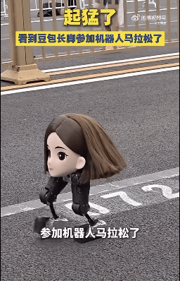 此外,就在各家厂商各显神通之时,一台“脖子以下全是腿”的机器人也在此次马拉松中亮相,并迅速出圈。该机器人因独特的矮小身材设计 + 豆包标志性的虚拟人物脸部形象而被网友称为“豆脚”机器人。